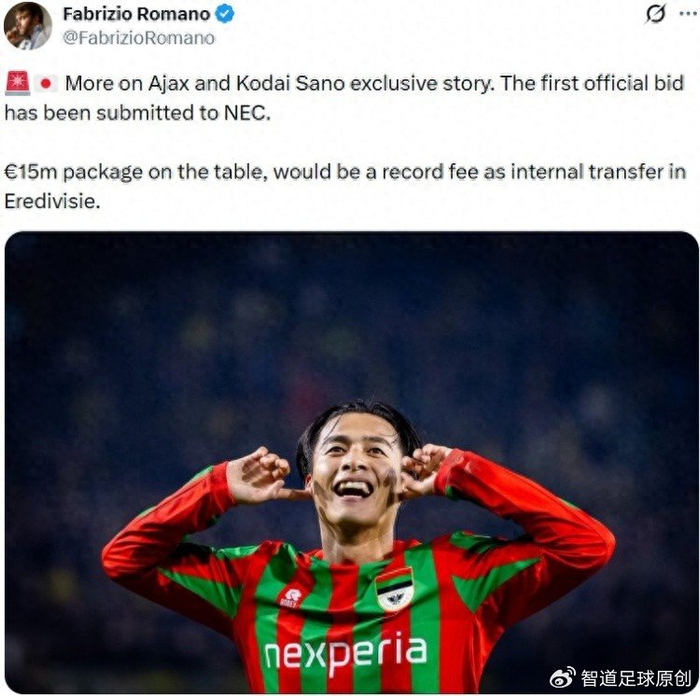 来自意大利转会专家罗马诺的最新消息,荷甲豪门阿贾克斯对22岁的日本中场佐野航大感兴趣,并已经提出了正式报价,这次报价的金额为1500万欧元。如果奈梅亨同意阿贾克斯的报价,那么佐野航大1500万欧元的转会费将会创造荷甲联赛内部转会的新纪录,佐野航大有望成为荷甲内部转会的新标王,这就是对日本球员实力的肯定。