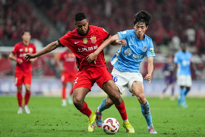 小将朱鹏宇对抗上海海港外援茹萨,朱鹏宇的表现让球迷眼前一亮,虽然没有随U23国足参加U23亚洲杯正赛,但被国足主帅邵佳一招入成年国家队。