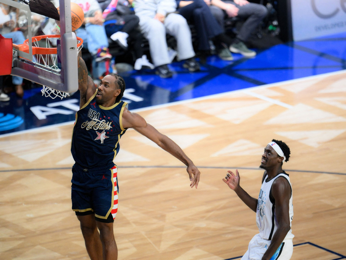 直播吧2月16日讯 NBA全明星正赛冠军赛,美国星条队21-47不敌美国新星队,伦纳德在比赛结束后接受了媒体采访。