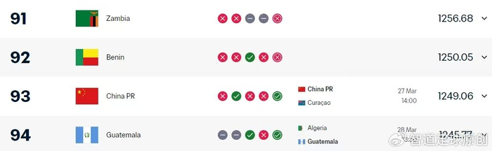 阿根廷原本的对手危地马拉世界排名第94位,比国足的第93位还低了一位,而新的对手赞比亚的世界排名第91位,也仅比国足的排名高出一位。