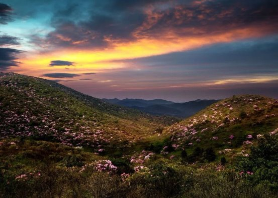 每年的4-5月,井冈山便成了杜鹃花的海洋。井冈山拥有40余种杜鹃花,其中包含多种珍稀品种。每年春季,笔架山、杜鹃山等景区形成连绵数十里的杜鹃花海,红的、粉的、白的杜鹃花竞相开放,景色极为壮观。因海拔差异呈现出不同的观赏效果。高山杜鹃与低山杜鹃错落开放,延长了观赏期,形成了"十里杜鹃长廊"的奇观。