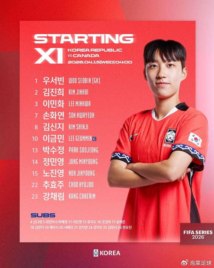 附:韩国女足2026FIFA系列赛对加拿大名单(4.14):